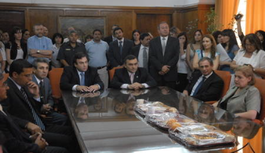 Participaron de la actividad el ministro de Gobierno, Justicia y Derechos Humanos, Félix González; el subsecretario de Justicia y Derechos Humanos, Carlos Quiroga Nanclares; el director del Servicio Penitenciario, Sebastián Sarmiento; el presidente de CLISA S.A., Osvaldo Llebeili; y los directores de los penales de la provincia. |